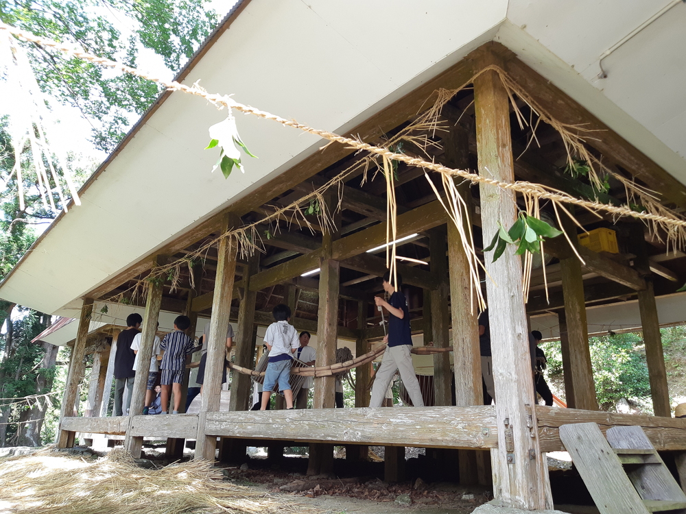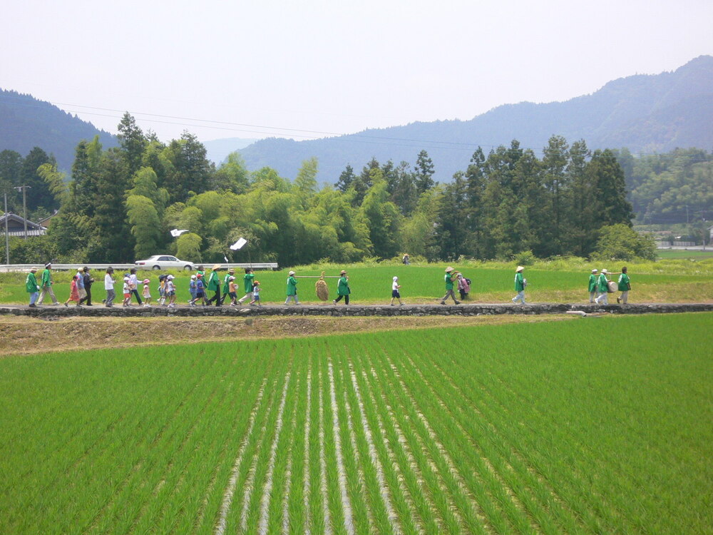 長さ1mの大わらじを担ぎ田の畔を練り歩き神社で参拝する