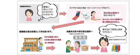 土佐町立図書館の利用カードをお持ちで、図書館から遠隔地にお住まいの方などを対象に、図書館の開館時に利用することが困難な場合、役場の支所または出張所へ図書をお届けするサービスです。